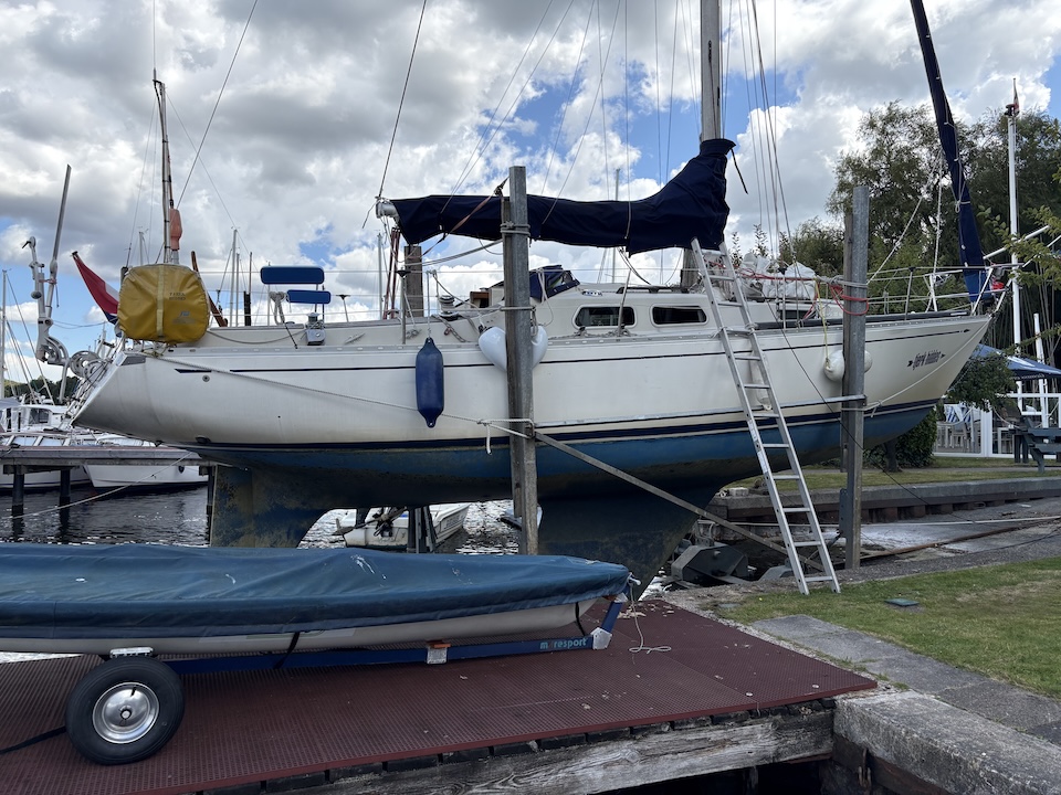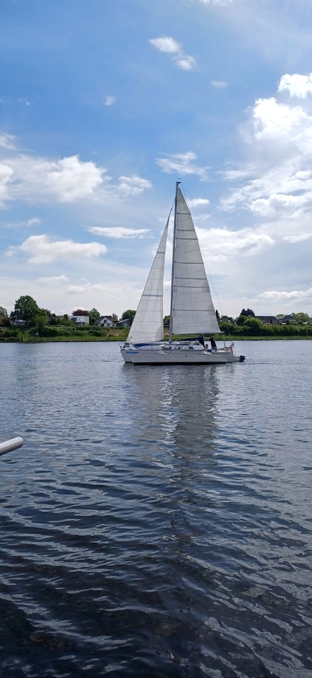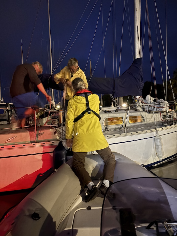 Am Abend des 22. August 2025 kam ein niederländischer Gastlieger auf uns zu und fragte nach einer elektrischen Pumpe, da er Wasser in seinem Segelboot habe. Vorsorglich haben wir uns die Situation vor Ort angeschaut. Der Wassereinbruch durch einen defekten Wellendichtring war doch erheblich, so dass eine „Rettungsaktion“ auf unseren Slipwagen mehr als angebracht erschien. Gegen 23:00 Uhr konnten wir vermelden: Schiff liegt hoch und trocken an Land, Gefahr des Untergehens ist beseitigt!