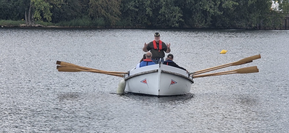 Unser Vorsitzender Andreas alias Admiral Horatio Hornblower musste zunächst seine Rudercrew anheuern und mit dem Jugendkutter auf Schatzsuche gehen. Eine heikle und wirklich gefährliche Aufgabe! Der wertvolle Schatz konnte trotz widriger Umstände aus den Tiefen der Obereider gehoben werden: Kostbare Schokogeleebananen!