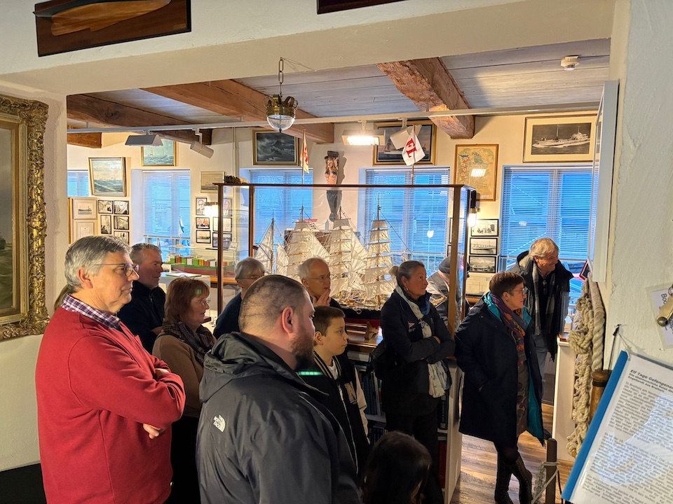 Peter Carstensen nahm sich viel Zeit für uns und führte uns Schritt für Schritt durch das mehrstöckige Archiv, das mit einer Vielzahl von Exponaten die Geschichte Rendsburgs und Umgebung als wichtiger Ort der Seefahrt und des Schiffbaus dokumentiert. Peter konnte nicht nur zu jedem Ausstellungsstück fundierte Informationen liefern, sondern sorgte mit einer Vielzahl von Anekdoten, Geschichten und Erlebnissen mit viel Liebe zum Detail für ganz hervorragende Unterhaltung. Einen Besuch des Schifffahrtsarchivs können wir nur wärmstens empfehlen; man sollte aber unbedingt etwas Zeit mitbringen.