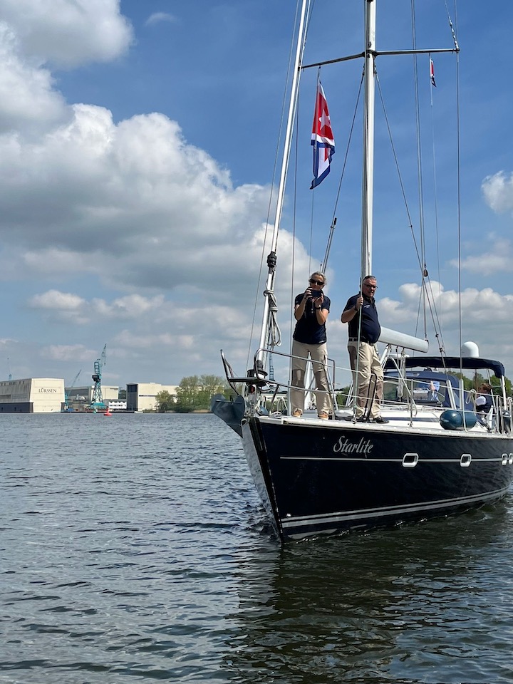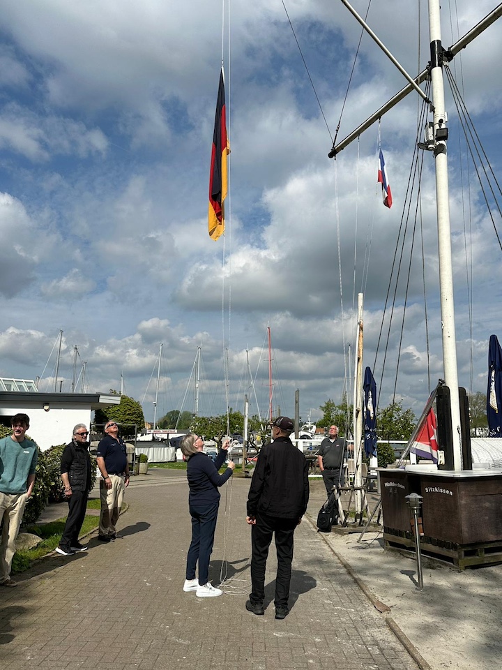 Nach der Flaggenparade sind wir mit einigen Booten bis zur Fahrwassertonne rot gefahren/gesegelt und zurück motort. Nach dem Anlegen haben wir gemeinsam das schöne Wetter bei Gulaschsuppe im „Riverside“ auf der Terrasse genutzt, um das eine oder andere „Fachgespräch“ zu führen. Kaffee und Kuchen gab es anschließend in unserem Mitgliederraum und sorgte für einen schönen Ausklang dieses Tages.
