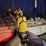 Am Abend des 22. August 2025 kam ein niederländischer Gastlieger auf uns zu und fragte nach einer elektrischen Pumpe, da er Wasser in seinem Segelboot habe. Vorsorglich haben wir uns die Situation vor Ort angeschaut. Der Wassereinbruch durch einen defekten Wellendichtring war doch erheblich, so dass eine „Rettungsaktion“ auf unseren Slipwagen mehr als angebracht erschien. Gegen 23:00 Uhr konnten wir vermelden: Schiff liegt hoch und trocken an Land, Gefahr des Untergehens ist beseitigt!