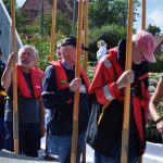 Unser Vorsitzender Andreas alias Admiral Horatio Hornblower musste zunächst seine Rudercrew anheuern und mit dem Jugendkutter auf Schatzsuche gehen. Eine heikle und wirklich gefährliche Aufgabe! Der wertvolle Schatz konnte trotz widriger Umstände aus den Tiefen der Obereider gehoben werden: Kostbare Schokogeleebananen!