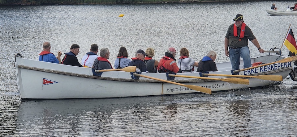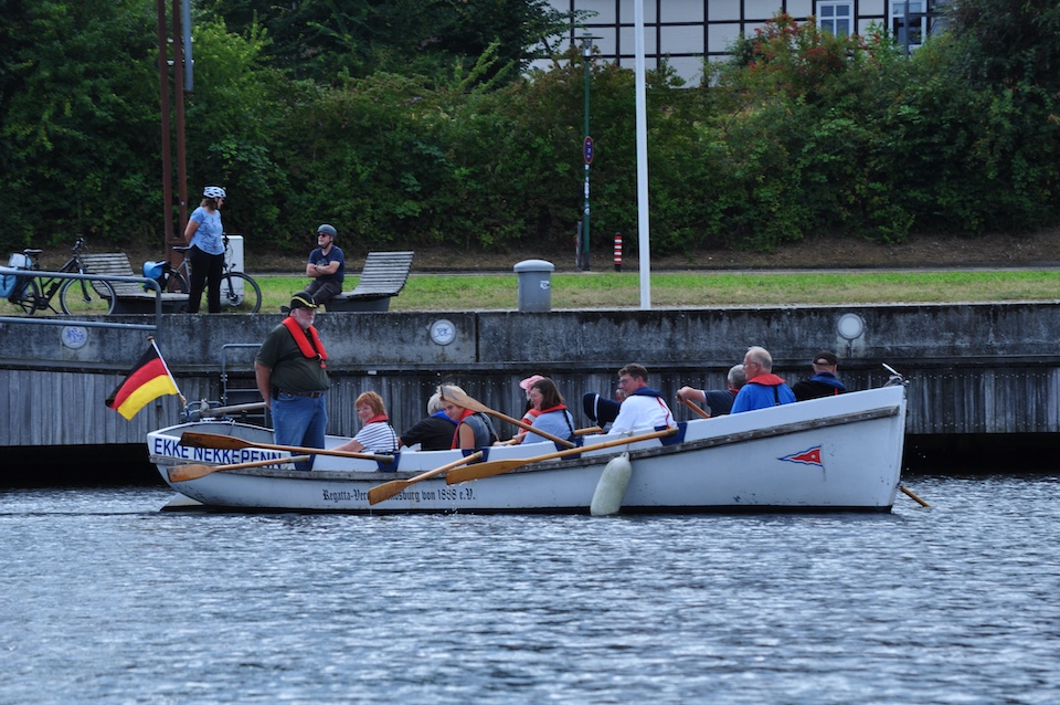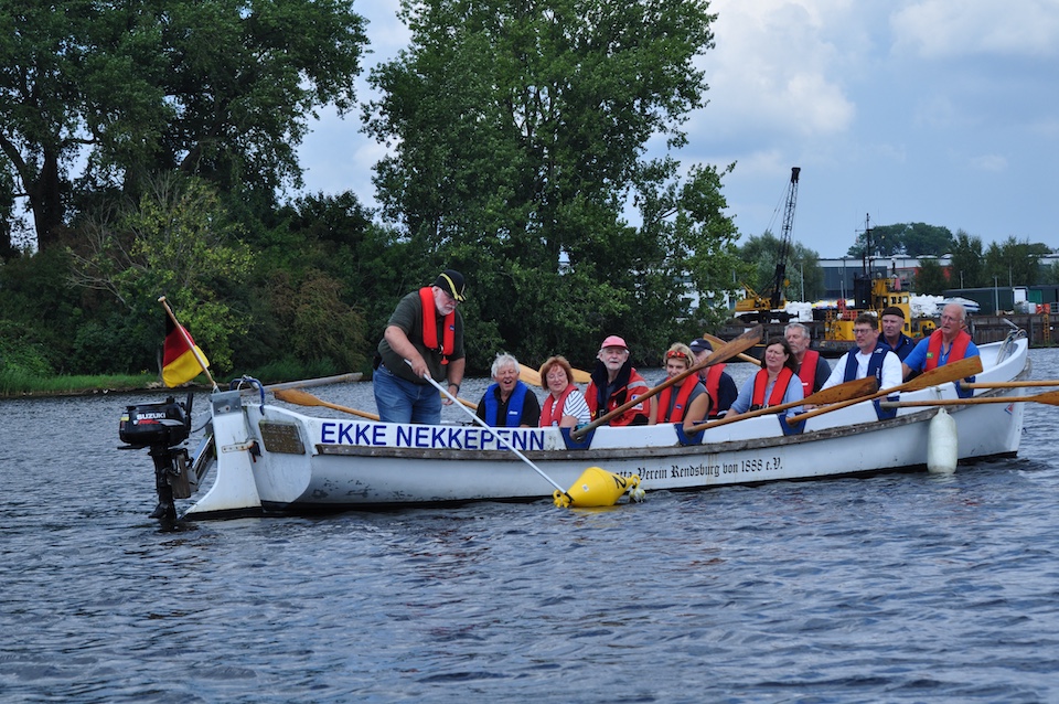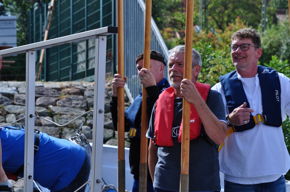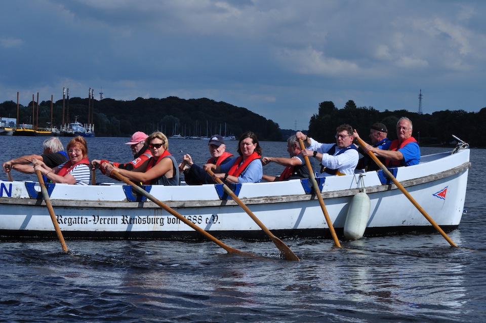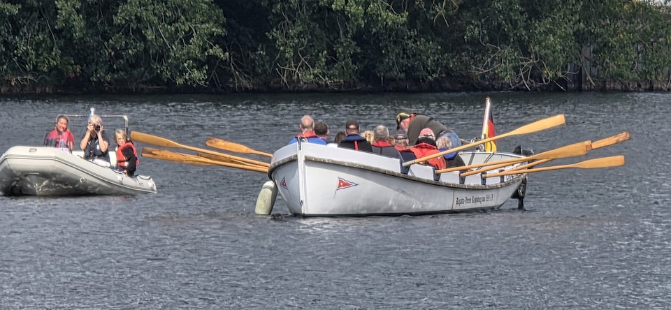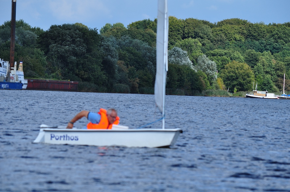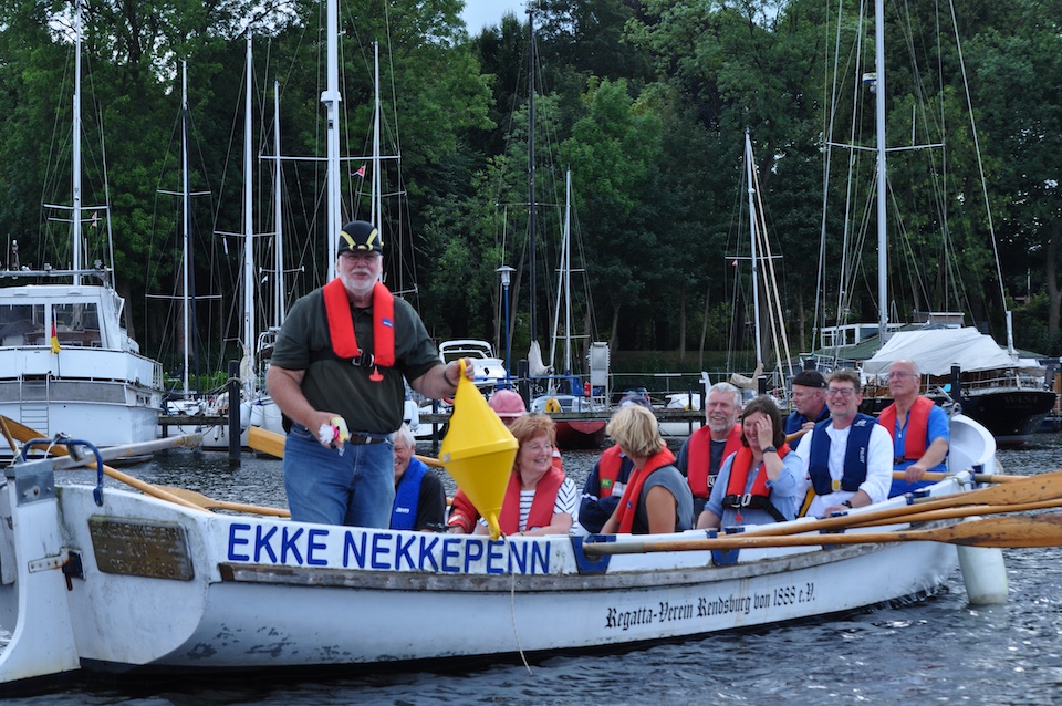 Unser Vorsitzender Andreas alias Admiral Horatio Hornblower musste zunächst seine Rudercrew anheuern und mit dem Jugendkutter auf Schatzsuche gehen. Eine heikle und wirklich gefährliche Aufgabe! Der wertvolle Schatz konnte trotz widriger Umstände aus den Tiefen der Obereider gehoben werden: Kostbare Schokogeleebananen!